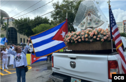 La procesión anual con la imagen peregrina de la Virgen de la Caridad, réplica de la imagen original, que se encuentra en el Santuario de El Cobre, en Santiago de Cuba, hizo 10 paradas en la ciudad que acoge a la mayor comunidad de exiliados cubanos en todo el mundo.